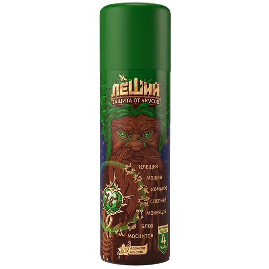 Леший 7 в 1 - комплексная защита от кровососущих насекомых и клещей предназначено для защиты взрослых людей от нападения кровососущих насекомых (комаров, мошек, мокрецов, москитов, слепней, блох), лесных и таёжных клещей при нанесении на открытые части тела, одежду, занавески, сетки и другие изделия из ткани.